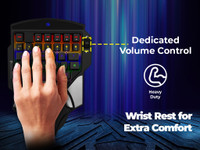 Enhance your gaming with a keyboard featuring a dedicated volume control, a comfortable wrist rest, and a heavy-duty build for lasting gameplay.