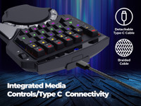 This gaming keyboard offers seamless performance, convenience, and durability thanks to its Type-C connector, integrated media controls, and a detachable braided Type-C cable.