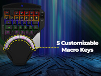 This ZEB-Max Atom Premium Keyboard offers an enhanced gaming experience with its one-handed design and precision-engineered controls. It features 12 customisable RGB lighting modes for an immersive setup, and 5 programmable macro keys for a competitive edge. Built for durability, it includes a detachable braided Type-C cable, integrated media controls, a dedicated volume control, and a comfortable wrist rest, ensuring lasting gameplay.