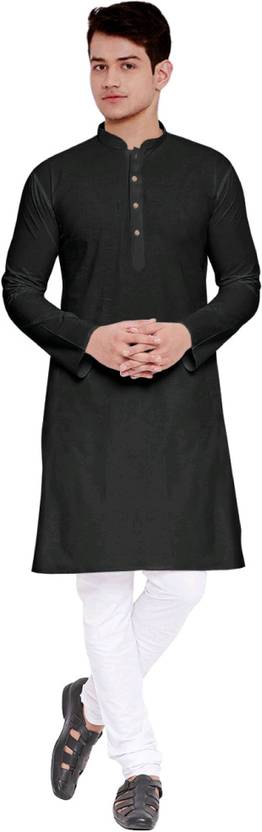 ZEDIN Men Solid Straight Kurta (Black)