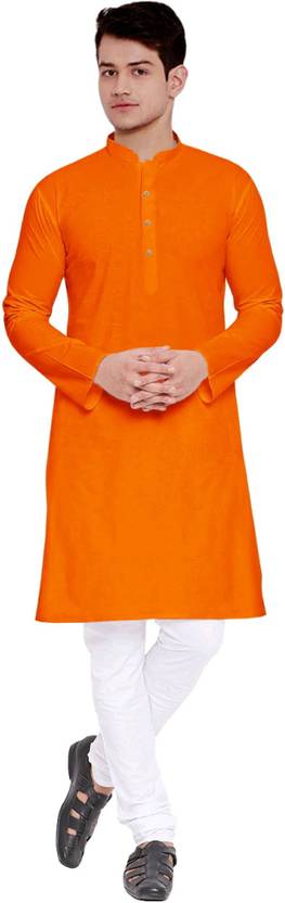 ZEDIN Men Solid Straight Kurta (Orange)