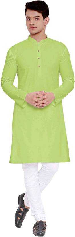 ZEDIN Men Solid Straight Kurta (Light Green)