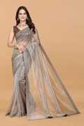 Saree Fabric: soft silk net | Blouse Fabric: Banarsi silk | Work:: Saree: Hot Fixing Stone Work | Blouse: Dyed,