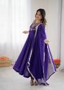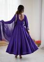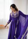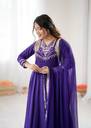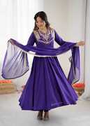 Embroidered Art Silk Stitched Flared/A-line Gown (Light Blue)