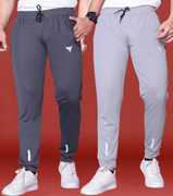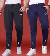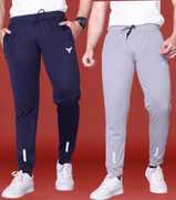 Pack of 2 Men Solid Blue, Grey Track Pants