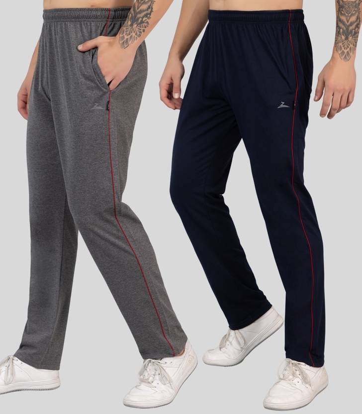 Zeffit Solid Men Grey, Dark Blue Track Pants