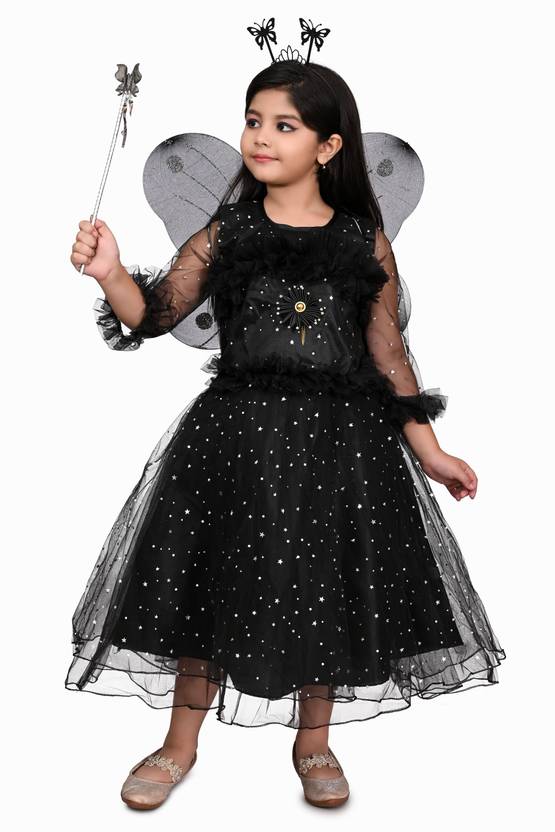 Zenat Girls Below Knee Party Dress (Black, 3/4 Sleeve)
