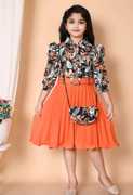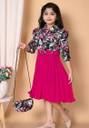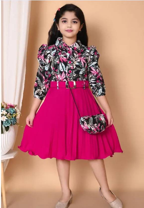 Zenat Girls Midi/Knee Length Party Dress (Pink, 3/4 Sleeve)