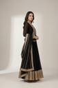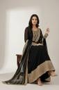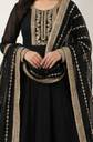 ELEGANT DESIGN: Stunning Black gown with golden embroidered borders on hem, sleeves, and neckline, complemented by an embellished dupatta with sequin detailing for a sophisticated ethnic look