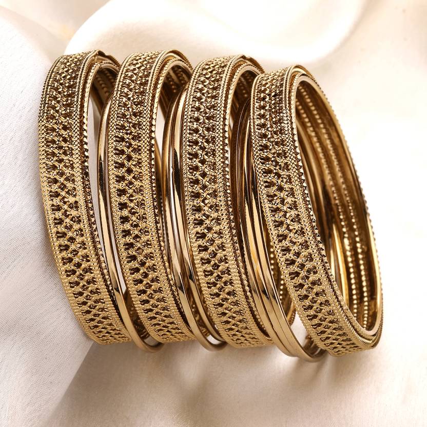The Zeneme Traditional Plain and textured Bangles Set is a beautiful and stylish accessory, designed to complement the elegance of girls and women. The set is carefully crafted with high-quality materials, featuring a luxurious Mehandi-toned finish that adds a sophisticated touch to any outfit.
