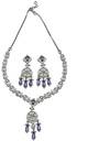 Rhodium-Plated Navy Blue Baguette Teardrops American Diamonds Studded Necklace & Earrings