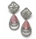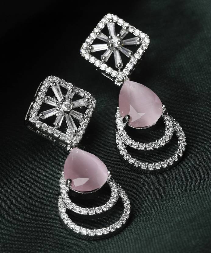 ZENEME Pink American Diamond studded Handcrafted Teardrop Layered Drop Earrings Cubic Zirconia Brass Drops & Danglers
