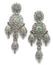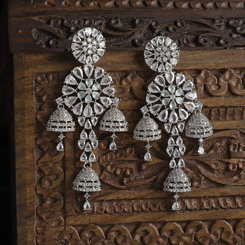 ZENEME Sea Green Floral Jhumkas Earrings Cubic Zirconia Brass Drops & Danglers