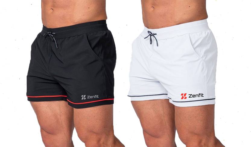 zenfit Solid Men Black, White Sports Shorts