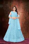 zengry Embellished Semi Stitched Lehenga Choli (Light Blue)
