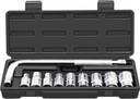 100% Brand New,high quality! Including sleeve and spanner. Can be used for vehicle maintenance and repair tools. Color: silver Specification: Product Name : Sleeve combination Color : Silver Material : carbon steel Process : precision polishing, the overall chrome Sleeve head size : 8mm/10mm/11mm/12mm/13mm/14mm/17mm/19mm/21mm Pole length : 23CM Packing : ABS plastic box Package Included: 1 * Connecting rod 9 * Sleeve head 1 * ABS plastic box Note : Light shooting and different displays may cause the color of the item in the picture a little different from the real thing. The measurement allowed error is +/- 1-3cm. Spark plug socket ratchet handle set. A socket wrench is a type of wrench or spanner that has a socket attached at one end, usually used to turn a fastener. The most prevalent form is the ratcheting socket wrench, often informally called a ratchet. A ratcheting socket wrench is the device within a hand tool in which a metal handle is attached to a ratcheting mechanism, which attaches to a socket. This in turn fits onto a type of bolt or nut. Pulled or pushed in one direction, the ratchet loosens or tightens the bolt or nut attached to the socket. Turned the other direction, the ratchet does not turn the socket but allows the ratchet handle to be re-positioned for another turn while staying attached to the bolt or nut. This ratcheting action allows the fastener to be rapidly tightened or loosened in small increments without disconnecting the tool from the fastener. A switch is built into the ratchet head that allows the user to apply the ratcheting action in either direction, as needed, to tighten or loosen a fastener. Other common methods of driving socket wrenches include pneumatic impact wrenches, hydraulic torque wrenches, torque multipliers and breaker bars. Some lesser known hybrid drivers include striking wrench tools with square drive, and hydraulic impact wrenches (typically powered by on site hydraulic power such as present with military tanks,