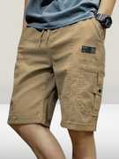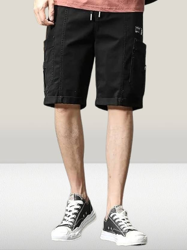 These men's black cargo shorts offer a comfortable and casual style, perfect for everyday wear. They feature a practical drawstring waist for an adjustable fit and multiple functional pockets, including side cargo pockets with buttoned flaps, providing ample storage. The solid black color makes them versatile and easy to pair with various outfits. Compatible with: Casual t-shirts, polo shirts, hoodies, sneakers, sandals, and casual jackets.