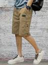 These men's cargo shorts are designed for comfort and utility, featuring a solid khaki/tan color and a relaxed fit. They come with multiple functional pockets, including spacious side cargo pockets with flaps, perfect for carrying essentials. The elastic waistband with a drawstring ensures a secure and adjustable fit, while the cuffed hems add a touch of casual style. Made from a breathable fabric, these shorts are ideal for everyday wear during warmer seasons.