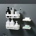Zenvio 4 Plastic Bathroom Kitchen Shelf + 4 Soap Box Stand Combo with Adhesive Stickers Plastic Wall Shelf (Number of Shelves - 8, White)