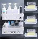 Zenvio Pack of 5 Wall Mount Bathroom Shelf and Soap Rack for Home and Kitchen (White) Plastic Wall Shelf (Number of Shelves - 5, White)