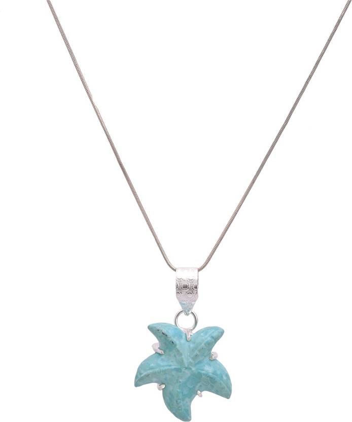 Stunning German silver man made mud stone pendant necklace from Zephyrr Amazing Star shaped design with Blue mud stone looks eye-catching.Will look beautiful when paired with ethnic saris, dresses and college wear.Great for gifting to friends too.Pendant attached.