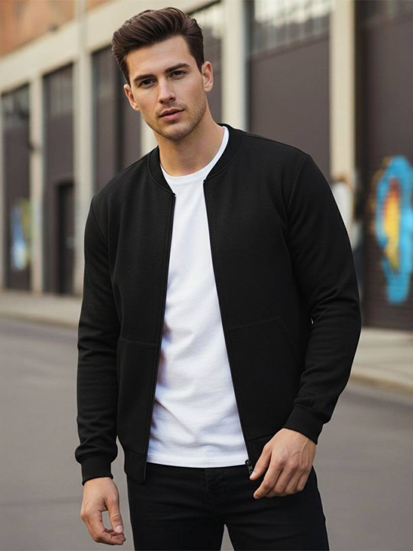 ZEPPI Solid Mandarin Neck Casual Men Purple Sweater
