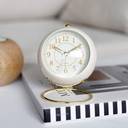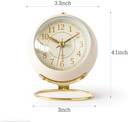 The sweep second hand does not make any annoying noise, completely tick-tock sound free and perfect for working and sleeping environments. One light bulb is built into the clock, and you can press the button on it to activate for night viewing. Simple On/Off switch starts the alarm setting. Turn knobs to set the clock time and alarm time. Press button to activate the backlight in the darkness. Perfect for kitchen, dining room, living room, bedroom, study room, office, etc. Adds a little color to the room. Also a great decorative gift for your friends. Provide Alloy Steel, Glass Twin Bell Edition Vintage Look with Night LED Display Table Alarm Clock Elevate your living spaces with the timeless charm of the Jcobay Retro Table Clock. This classic non-ticking tabletop alarm clock combines vintage aesthetics with modern functionality, creating a perfect blend of style and practicality for your home.Designed with your comfort in mind, it creates a peaceful sleep environment without the annoying ticking sound. Perfect for adults and kids alike, the Jcobay Vintage Alarm Clock ensures a good night's sleep.On the smaller scale ring, each dot indicates 10 minutes for alarm.