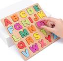 ZEQTOS Wooden 3D Capital Alphabets, Numbers, and Shapes Board Puzzle Toy for Kids (Beige)
