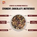 A delicious snack experience is provided by the muesli. Savour the delicious contrast between the crunchy almonds and the creamy, dark chocolate. It's like having a guilt-free dessert to start the day, with each bite treating your taste senses to a delicious surprise. If you love chocolate, you will love this daily serving of sweetness that is not only delicious but also healthy.