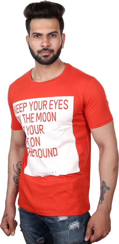 Men Self Design Round Neck Cotton Blend Orange T-Shirt