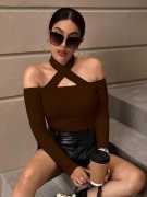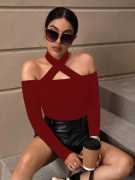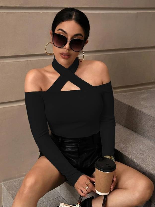 Casual Off Shoulder Sleeve Solid Women Black Top