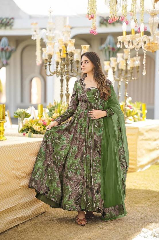 This gown is designed in the traditional Anarkali style, offering a flared silhouette that starts at the waist and gently flows downward. Whether attending a small gathering, heading to a cultural event, or just wanting something comfortable for daily use, the Anarkali style strikes a balance between beauty and practicality.