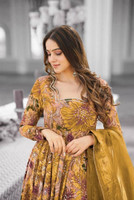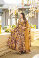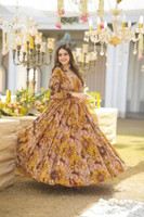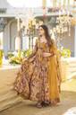 Owing to its traditional design language, this gown aligns naturally with wedding functions, Navratri celebrations, Diwali gatherings, Karwa Chauth observances, and sangeet nights. The detailing and silhouette complement ceremonial environments, while the overall presentation supports cultural significance. As the design remains expressive yet balanced, this gown integrates smoothly into festive rituals. This makes it suitable for moments that call for cultural expression and refined ethnic styling.