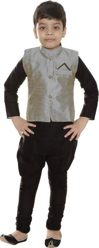 ZEUS' Boys Festive & Party Kurta, Waistcoat and Pyjama Set (Black Pack of 1)