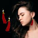 These earrings are a celebration of artistry, with each thread and bead forming a unique masterpiece. The blend of colorful threads with brass jewelry elements adds a touch of sophistication and versatility to your wardrobe. Whether it's for a wedding or a casual outing, these earrings are the perfect choice.