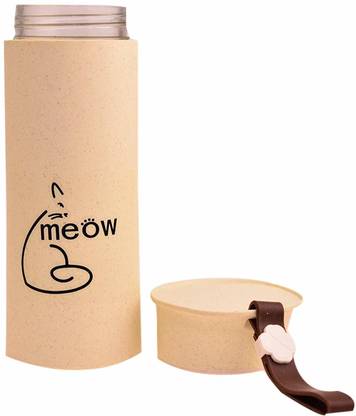 Meow Cream Color Water Bottle Leak Proof, Strong Body, Silicon Cover, Keeps Water