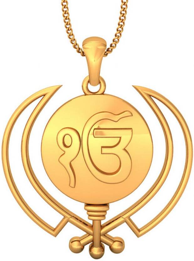Zeya Ik Onkar Khanda Gold Pendant For Women 18kt Cubic Zirconia Yellow Gold Pendant