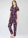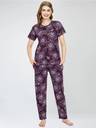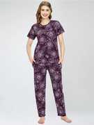 ZEYO Night Suit for Women's Wine Berry Floral Printed Cotton Night Dress of Top and Pajama set 5778