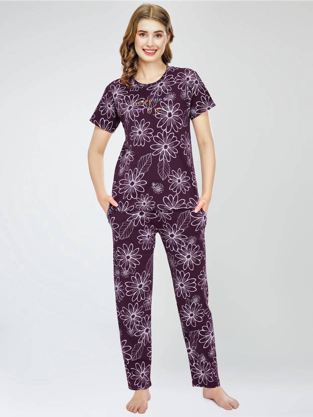 Sleeve Type: Half Sleeve Night suit set | Neck Type: Round Neck Night Suits for Women Stylish Material: 100% Hosiery Cotton Night dress | Print: Floral Printed Night Suit set for Women Cotton Two piece Nightwear: Top + Elastic Waistband with drawstring, 2 side pockets in Printed Pyjama (Pajama sets for women) Purpose: Multi Use Night Dress for women cotton , sleepwear - loungewear - home wear for women - Perfect gift for loved ones Fit Type: Regular (Relaxed) Fit. Please refer Size Chart from Last Product Image for perfect fit nightwear.