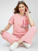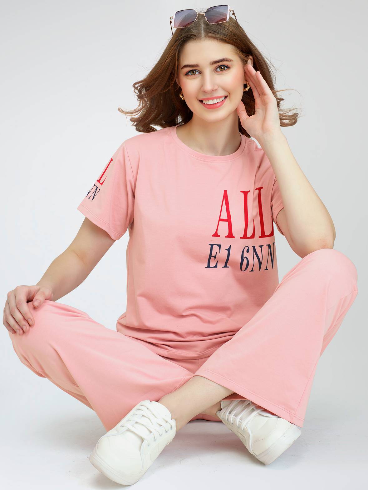 ZEYO Women Printed, Solid Orange Top & Pyjama Set