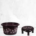 Ziasi Bathroom Set of 10, Balti 20L & 5L,Tub 22L, Dustbin 11L, 2pc Mug (Chocolate) 16 L Plastic Bucket (Brown)