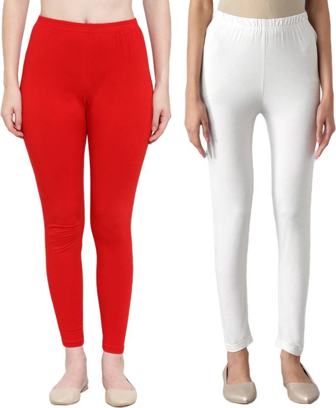ZIBELL Ankle Length Western Wear Legging (White, Red, Solid)