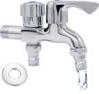 Zibuyu Dual Brass 2-in-1 Washing Machine Tap Two Way Outlet Kitchen Bathroom Silver Two in One Tap for Bathroom with Wall Flange Pillar Tap Faucet (Single Handle Installation Type)