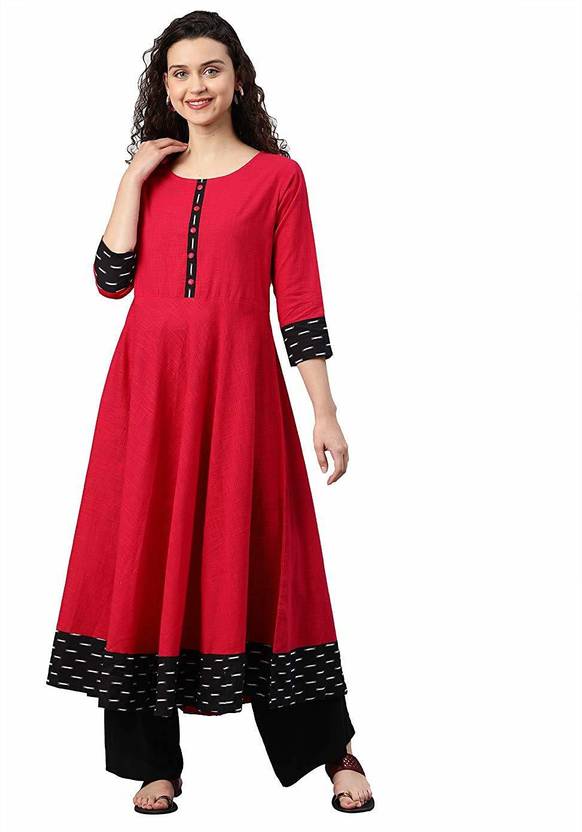 Women Geometric Print Cotton Blend Anarkali Kurta (Red)