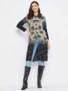 Zigo Self Design Collared Neck Casual Women Black Sweater