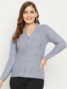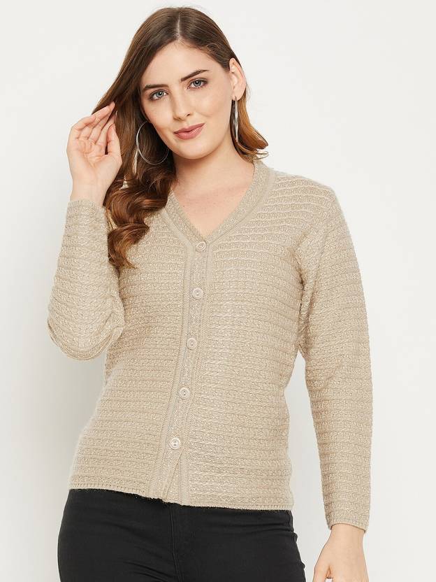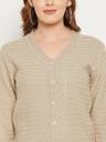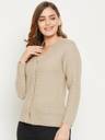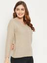 Zigo Self Design V Neck Casual Women Beige Sweater
