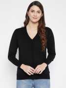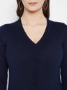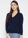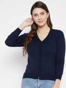 Zigo Solid V Neck Casual Women Dark Blue Sweater
