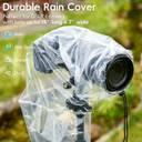 Introducing the ZIKKON RC-L Camera Rain Cover, a set of two polyethylene covers designed to safeguard your SLR/Mirrorless camera and lens from adverse conditions. Ideal for lenses up to 7.0" in diameter and 18" in length, this cover offers protection against dust, rain, snow, sand, and windblown grit. It ensures your entire camera setup, including the tripod mount, remains shielded during use.