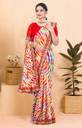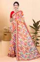 White, green & red leheriya saree Leheriya printed saree with embellished border