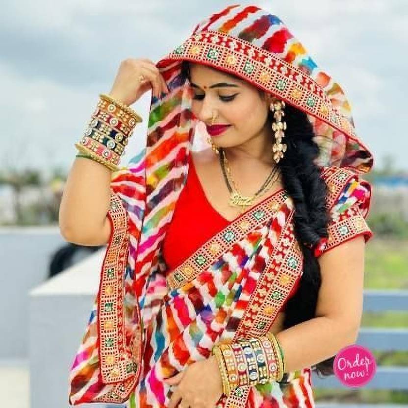 MAHAKALI CLOTHING Embroidered Leheria Georgette Saree (Multicolor)